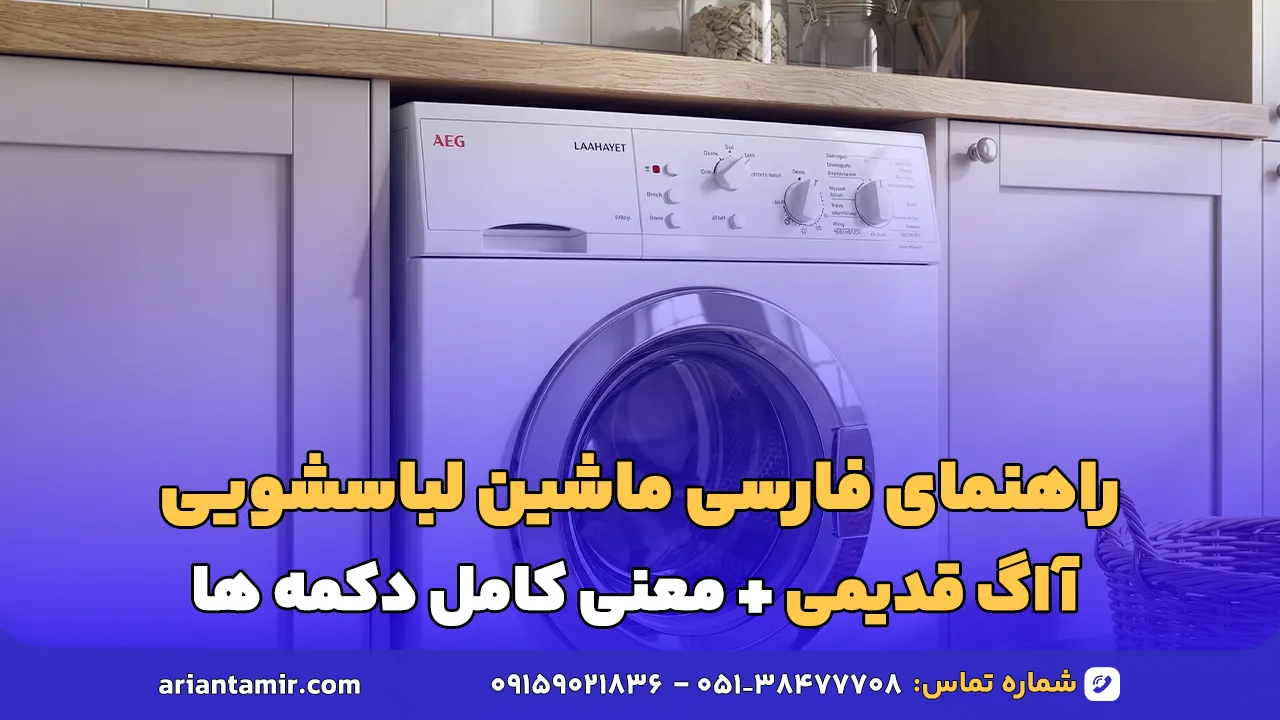 در این مقاله به بررسی کامل راهنمای فارسی ماشین لباسشویی آاگ قدیمی پرداخته ایم. از معرفی دکمه ها و برنامه های شستشو در مدل های AEG Lavamat گرفته تا نحوه انتخاب برنامه مناسب و نکات مهم نگهداری برای افزایش عمر دستگاه. و معرفی مدل های پرطرفدار مانند Lavamat 508، ۵۳۸، ۶۱۰، 400F و Bella SL است. اگر در نهایت به تعمیرکار متخصص نیاز داشتید، می توانید برای دریافت خدمات تخصصی آرین تعمیر با شماره های ۰۹۱۵۹۰۲۱۸۳۶ یا ۳۲۷۱۷۲۷۲-۰۵۱ تماس بگیرید یا از طریق صفحه تعمیر لوازم خانگی در مشهد درخواست اعزام تعمیرکار ثبت کنید.